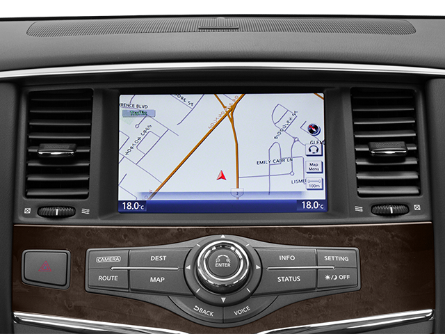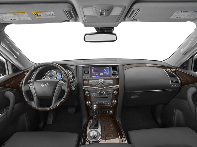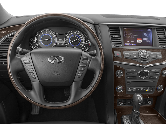 THIS VEHICLE INCLUDES THE FOLLOWING FEATURES AND OPTIONS: 22 Wheel Package (22 x 8.0 9-Spoke Forged Aluminum Alloy Wheels), Theater Package (120V Power Outlet, Dual 7 Color Monitors, Heated 2nd-Row Seats, and Wireless Headphones (2)), 13 Speakers, 2.94 Axle Ratio, 20 7-Spoke Aluminum Alloy Wheels, 3rd row seats: split-bench, 4-Wheel Disc Brakes, ABS brakes, Activation Disclaimer, Air Conditioning, Alloy wheels, AM/FM radio: SiriusXM, Anti-whiplash front head restraints, Auto tilt-away steering wheel, Auto-dimming door mirrors, Auto-dimming Rear-View mirror, Auto-leveling suspension, Automatic temperature control, Bose Premium Sound System, Brake assist, Bumpers: body-color, Carpeted Cargo Mat/Cargo Net & First Aid Kit, CD player, Delay-off headlights, Driver door bin, Driver vanity mirror, Dual front impact airbags, Dual front side impact airbags, Electronic Stability Control, Emergency communication system: INFINITI Connection, Four wheel independent suspension, Front anti-roll bar, Front Bucket Seats, Front Center Armrest, Front dual zone A/C, Front fog lights, Front reading lights, Fully automatic headlights, Garage door transmitter: HomeLink, Genuine wood console insert, Genuine wood dashboard insert, Genuine wood door panel insert, Heated door mirrors, Heated Front Bucket Seats, Heated front seats, Heated steering wheel, High intensity discharge headlights: Bi-Xenon, Illuminated entry, Illuminated Kick Plates, Leather Shift Knob, Leather steering wheel, Leather-Appointed Seat Trim w/Tuscan Burl, Literature Kit, Low tire pressure warning, Memory seat, Navigation System, Occupant sensing airbag, Outside temperature display, Overhead airbag, Overhead console, Panic alarm, Passenger door bin, Passenger vanity mirror, Power door mirrors, Power driver seat, Power Liftgate, Power moonroof, Power passenger seat, Power steering, Power windows, Radio data system, Rain sensing wipers, Rear air conditioning, Rear anti-roll bar, Rear audio controls, Rear reading lights, Rear seat center armrest, Rear window defroster, Rear window wiper, Reclining 3rd row seat, Remote keyless entry, Roof rack: rails only, Roof Rail Crossbars, Security system, Speed control, Speed-sensing steering, Split folding rear seat, Spoiler, Stainless Steel Rear Bumper Protector, Steering wheel memory, Steering wheel mounted audio controls, Tachometer, Telescoping steering wheel, Tilt steering wheel, Traction control, Trip computer, Turn signal indicator mirrors, Variably intermittent wipers, and Voltmeter.
