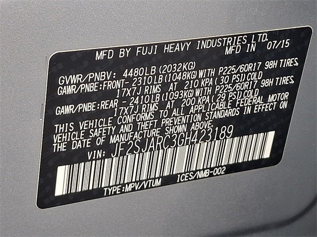 - Tires: P225/60R17 98H All-Season