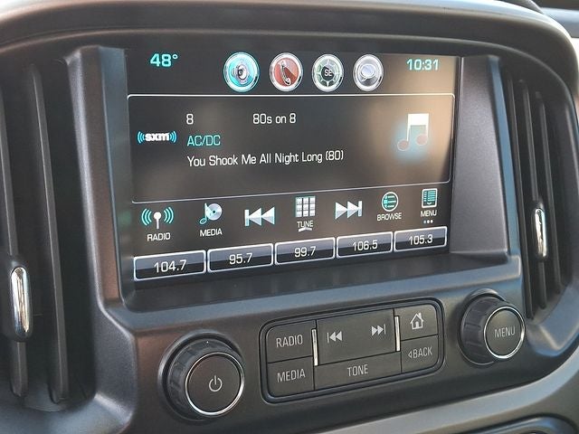 THIS VEHICLE INCLUDES THE FOLLOWING FEATURES AND OPTIONS: Heavy-Duty Trailering Package, Preferred Equipment Group 4Z7, 4WD, 3.42 Rear Axle Ratio, 4-Way Power Front Passenger Seat Adjuster, 4-Wheel Disc Brakes, 6 Speakers, 6-Speaker Audio System Feature, ABS brakes, Air Conditioning, Alloy wheels, AM/FM radio: SiriusXM, Apple CarPlay, Auto-dimming Rear-View mirror, Automatic temperature control, Black Spray-On Bedliner w/Chevrolet Logo, Bose Premium 7-Speaker Audio System Feature, Bumpers: body-color, Cargo Tie-Down Rings (Set of 4) (LPO), Cloth/Leatherette Seat Trim, Compass, Delay-off headlights, Driver 4-Way Power Seat Adjuster, Driver door bin, Driver vanity mirror, Dual front impact airbags, Dual front side impact airbags, Electronic Stability Control, Emergency communication system: OnStar Guidance, Exhaust Brake, Exterior Parking Camera Rear, Front anti-roll bar, Front Bucket Seats, Front Center Armrest, Front fog lights, Front License Plate Kit, Front reading lights, Front wheel independent suspension, Fully automatic headlights, Heated Driver & Front Passenger Seats, Heated front seats, Illuminated entry, Integrated Trailer Brake Controller, Low tire pressure warning, Occupant sensing airbag, Outside temperature display, Overhead airbag, Overhead console, Panic alarm, Passenger door bin, Passenger vanity mirror, Power door mirrors, Power Driver Lumbar Control Seat Adjuster, Power driver seat, Power Passenger Lumbar Control Seat Adjuster, Power passenger seat, Power steering, Power windows, Premium audio system: Chevrolet MyLink, Radio data system, Radio: AM/FM Stereo w/8 Diagonal Color Touch Screen, Rear reading lights, Rear seat center armrest, Rear step bumper, Rear window defroster, Remote keyless entry, Security system, SiriusXM Satellite Radio, Speed control, Speed-sensing steering, Steering wheel mounted audio controls, Tachometer, Telescoping steering wheel, Tilt steering wheel, Traction control, Trip computer, Variably intermittent wipers, Wheel Locks, and Wheels: 17 x 8 Dark Argent Metallic Cast Alloy.