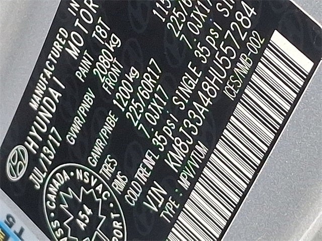 This Vehicle Includes the Following Options: 17 Alloy Wheels, 4-Wheel Disc Brakes, 8 Speakers, ABS brakes, Air Conditioning, Alloy wheels, AM/FM radio: SiriusXM, Apple CarPlay & Android Auto, Auto-dimming Rear-View mirror, Automatic temperature control, Axle Ratio: 3.51, Brake assist, Bumpers: body-color, Compass, Delay-off headlights, Driver door bin, Driver vanity mirror, Dual front impact airbags, Dual front side impact airbags, Electronic Stability Control, Emergency communication system: Blue Link, Exterior Parking Camera Rear, Four wheel independent suspension, Front anti-roll bar, Front Bucket Seats, Front Center Armrest, Front dual zone A/C, Front fog lights, Front reading lights, Fully automatic headlights, Garage door transmitter: HomeLink, Heated door mirrors, Heated Front Bucket Seats w/Power Driver's Seat, Heated front seats, Illuminated entry, Leather Seat Trim, Low tire pressure warning, Occupant sensing airbag, Outside temperature display, Overhead airbag, Overhead console, Panic alarm, Passenger door bin, Passenger vanity mirror, Power door mirrors, Power passenger seat, Power steering, Power windows, Radio: Infinity AM/FM/HD Radio/MP3 Audio System, Rear anti-roll bar, Rear seat center armrest, Rear window defroster, Rear window wiper, Remote keyless entry, Roof rack: rails only, Security system, Speed control, Speed-sensing steering, Split folding rear seat, Spoiler, Steering wheel mounted audio controls, Tachometer, Telescoping steering wheel, Tilt steering wheel, Traction control, Trip computer, Turn signal indicator mirrors, and Variably intermittent wipers.