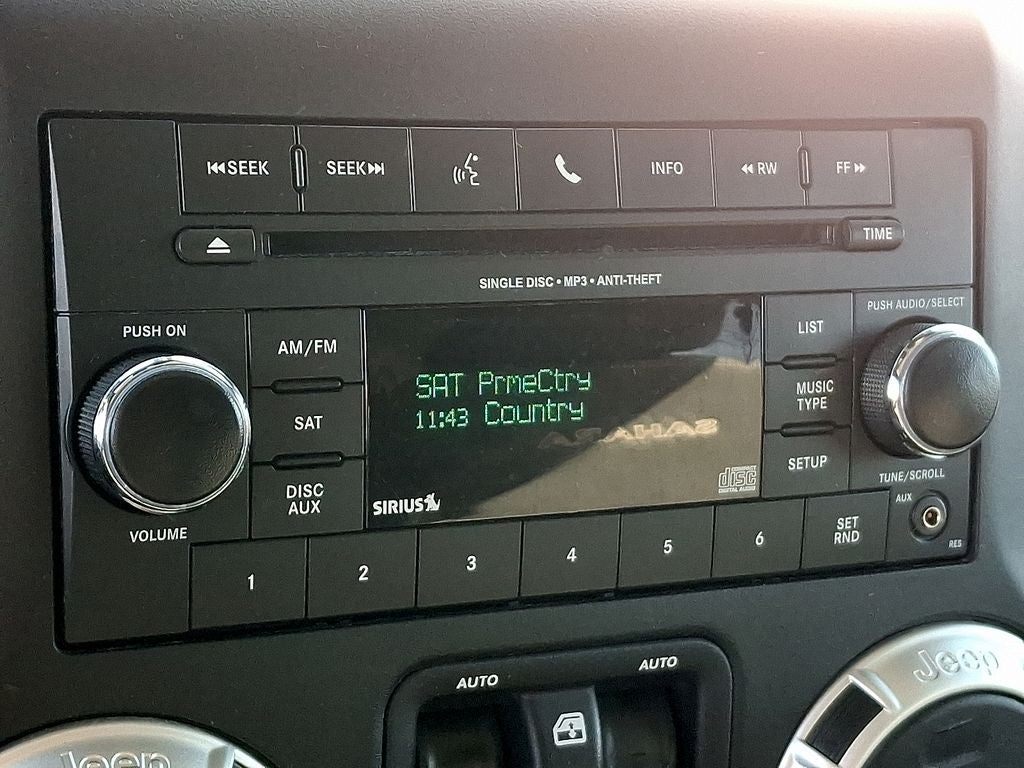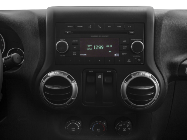 THIS VEHICLE INCLUDES THE FOLLOWING FEATURES AND OPTIONS: Connectivity Group (Tire Pressure Monitoring Display, Uconnect Voice Command w/Bluetooth®, and Vehicle Information Center), Quick Order Package 23G (Body Color Appliques Front Bumper, Body Color Appliques Rear Bumper, and Body Color/Accent Color Grille), Trailer Tow Group (Class II Receiver Hitch and Trailer Tow w/4-Pin Connector Wiring), 18 x 7.5 Polished Satin Carbon Wheels, 4-Wheel Disc Brakes, 8 Speakers, ABS brakes, Air Conditioning, Alloy wheels, AM/FM radio: SiriusXM, Anti-Spin Differential Rear Axle, Audio Jack Input for Mobile Devices, Auto-dimming Rear-View mirror, Black 3-Piece Hard Top, Brake assist, CD player, Cloth Seats w/Adjustable Head Restraints, Compass, Delete Sunrider Soft Top, Driver door bin, Driver Height Adjuster Seat, Driver vanity mirror, Dual front impact airbags, Electronic Stability Control, Freedom Panel Storage Bag, Front anti-roll bar, Front Bucket Seats, Front Center Armrest w/Storage, Front fog lights, Front reading lights, Front Seat Back Map Pockets, Fully automatic headlights, Heated door mirrors, Heavy Duty Suspension w/Gas Shocks, Illuminated entry, Integrated roll-over protection, Leather steering wheel, Low tire pressure warning, MOPAR Slush Mats, Occupant sensing airbag, Outside temperature display, Panic alarm, Passenger door bin, Passenger vanity mirror, Power door mirrors, Power steering, Power windows, Radio data system, Radio: 130, Rear anti-roll bar, Rear Window Defroster, Rear Window Wiper/Washer, Remote keyless entry, Security system, Speed control, Steering wheel mounted audio controls, Sunrider Soft Top, Tachometer, Tilt steering wheel, Traction control, Trip computer, and Variably intermittent wipers.
