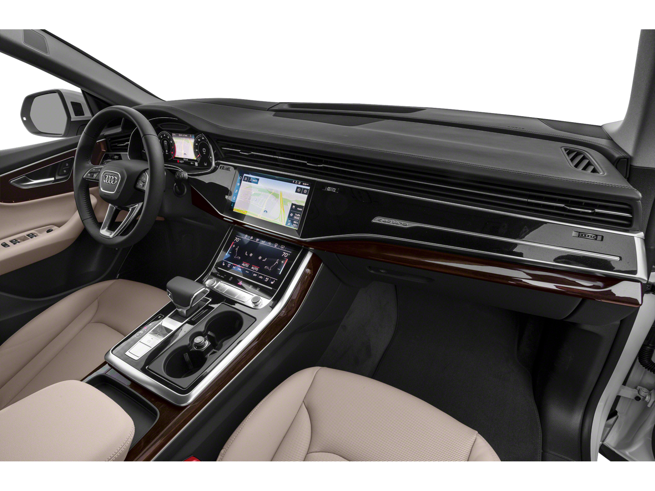 This Vehicle Includes the Following Options: Ambient Interior Lighting Plus Package, Convenience Package (Audi Phone Box w/Wireless Charging, Audi Side Assist w/Pre Sense Rear, and Heated Power Folding Auto-Dimming Exterior Mirrors), Driver Assistance Package (Audi Active Lane Departure Warning, Audi Adaptive Cruise Assist, and Traffic Sign Recognition), Prestige (4-Zone Climate Control, Alu Touch-Sensitive Interior Buttons, Bang & Olufsen 3D Premium Sound System, Electric Sunblinds for Rear Side Windows, HD Matrix Design LED Headlights, Headlight Washer System, Heads-Up Display, High-Beam Assist, Illuminated Door Sills, Leather Dashboard, Power Door Closers, Top View Camera System, Ventilated Front Seats, and Wheels: 21 5-Spoke W-Design), 10 Speakers, 4-Wheel Disc Brakes, ABS brakes, Adaptive suspension, Air Conditioning, Alloy wheels, AM/FM radio: SiriusXM, Audi Guard Protection Kit, Audi smartphone interface (Apple CarPlay/Android Auto), Auto-dimming Rear-View mirror, Automatic temperature control, Axle Ratio: TBA, Brake assist, Bumpers: body-color, Compass, Delay-off headlights, DELETE Front License Plate Holder, Driver door bin, Driver vanity mirror, Dual front impact airbags, Dual front side impact airbags, Electronic Stability Control, Emergency communication system: Audi connect CARE, Exterior Parking Camera Rear, Four wheel independent suspension, Front & Rear Doors Audi Beam-Rings, Front anti-roll bar, Front Bucket Seats, Front Center Armrest, Front dual zone A/C, Front fog lights, Front reading lights, Fully automatic headlights, Garage door transmitter: HomeLink, Genuine wood door panel insert, Heated door mirrors, Heated Front Bucket Seats, Heated front seats, High-Gloss Gray Oak Wood Inlays, Illuminated entry, Leather Seating Surfaces, Leather Shift Knob, Leather steering wheel, Low tire pressure warning, Memory seat, Navigation System, Occupant sensing airbag, Outside temperature display, Overhead airbag, Overhead console, Panic alarm, Passenger door bin, Passenger vanity mirror, Power door mirrors, Power driver seat, Power Liftgate, Power moonroof, Power passenger seat, Power steering, Power windows, Radio data system, Radio: Audi MMI Navigation Plus w/Touch Response, Rain sensing wipers, Rear air conditioning, Rear anti-roll bar, Rear fog lights, Rear reading lights, Rear seat center armrest, Rear window defroster, Rear window wiper, Remote keyless entry, Roof rack: rails only, Security system, Speed control, Speed-sensing steering, Split folding rear seat, Spoiler, Steering wheel memory, Steering wheel mounted audio controls, Tachometer, Telescoping steering wheel, Tilt steering wheel, Traction control, Trip computer, Turn signal indicator mirrors, USB Cables, Variably intermittent wipers, Wheels: 20 5-Spoke, and Wheels: 22 Contrast Gray Partly Polished.