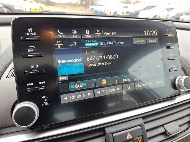 - Radio: 450-Watt AM/FM/HD Premium Audio System -inc: 10 speakers including subwoofer, SiriusXM satellite radio, 8" display audio w/high-resolution (720P) electrostatic touch-screen, knobs and hard keys for primary controls and customizable feature settings, Bluetooth® HandsFreeLink, Bluetooth® streaming audio, Pandora compatibility, SMS text message function, radio data system (RDS), speed-sensitive volume compensation (SVC), 2.5-amp USB smartphone/audio interface port in front console and center console, HondaLink, Apple CarPlay integration, Android Auto integration, illuminated steering wheel-mounted audio controls and fin-type roof-mounted antenna, SiriusXM services require a subscription after any trial period, If you decide to continue your SiriusXM service at the end of your trial subscription, the plan you choose will automatically renew and bill at then-current rates until you call SiriusXM at 1-866-635-2349 to cancel, See our Customer Agreement for complete terms at www.siriusxm.com, Fees and programming subject to change, XM satellite service is available only to those at least 18 years and older in the 48 contiguous United States and D.C