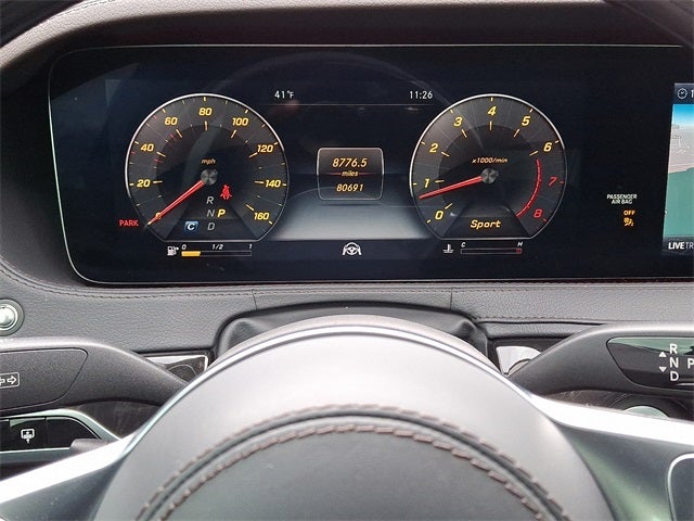 This Vehicle Includes the Following Options: AMG® Line Exterior (AMG® Line Exterior (772)), Driver Assistance Package (Active Distance Assist DISTRONIC®, Active Lane Change Assist, Active Steering Assist, Automatic Speed Takeover, Extended Restart by Stop & Go, Route Based Speed Adaptation, and Speed Limit Assist), Driver Assistance Package (23P), KEYLESS GO® Comfort Package, Premium Package (Active Parking Assist, Front Variable Heated Seats, HANDS-FREE ACCESS, Heated & Ventilated Front Seats, KEYLESS GO®, Multicontour Front Seats w/Massage Feature, Power Rear-Window Sunshades, and Surround View Camera), Sport Package Code, Ash Leather, 13 Speakers, 19 Multi-Spoke Wheels, 20 Twin 5-Spoke Wheels, 3-Spoke Wood & Leather Steering Wheel, 4-Wheel Disc Brakes, ABS brakes, Adaptive suspension, Air Conditioning, Alloy wheels, AM/FM radio: SiriusXM, Android Auto®, Apple CarPlay®, Apple CarPlay®/Android Auto®, Auto High-beam Headlights, Auto tilt-away steering wheel, Auto-dimming door mirrors, Auto-dimming Rear-View mirror, Auto-leveling suspension, Automatic temperature control, Brake assist, Bumpers: body-color, Burmester® Surround Sound System, CD Player in Glove Box, Child-Seat-Sensing Airbag, Comfort Box, Compass, Crystal Grey Headliner, Delay-off headlights, Door auto-latch, Driver door bin, Driver vanity mirror, Dual front impact airbags, Dual front side impact airbags, Electronic Stability Control, Emergency communication system: eCall Emergency System, Exterior Parking Camera Rear, Four wheel independent suspension, Front anti-roll bar, Front Bucket Seats, Front Center Armrest, Front dual zone A/C, Front reading lights, Garage door transmitter: Homelink, Genuine wood console insert, Genuine wood door panel insert, Head restraints memory, Heated door mirrors, Heated Front Seats, Heated front seats, HVAC memory, Illuminated entry, Knee airbag, Low tire pressure warning, Memory seat, Navigation Map Updates for 3 Years, Navigation system: COMAND®, Occupant sensing airbag, Outside temperature display, Overhead airbag, Overhead console, Panic alarm, Passenger door bin, Passenger vanity mirror, Perforated Nappa Leather Upholstery, Power adjustable front head restraints, Power adjustable rear head restraints, Power door mirrors, Power driver seat, Power Front Seats w/3-Position Memory, Power moonroof: Panorama, Power passenger seat, Power steering, Power windows, Pre-Wiring for CD Player, Premium audio system: COMAND®, Radio data system, Radio: COMAND® System w/Navigation, Rain sensing wipers, Rear anti-roll bar, Rear fog lights, Rear reading lights, Rear seat center armrest, Rear Seat Entertainment & Comfort Adapter, Rear side impact airbag, Rear Spoiler, Rear Window Blind, Rear window defroster, Remote keyless entry, Security system, SiriusXM Satellite Radio, Smartphone Integration, Speed control, Speed-sensing steering, Steering wheel memory, Steering wheel mounted audio controls, Tachometer, Telescoping steering wheel, Tilt steering wheel, Traction control, Trip computer, Turn signal indicator mirrors, Variably intermittent wipers, Weather band radio, and Wheel Locks.