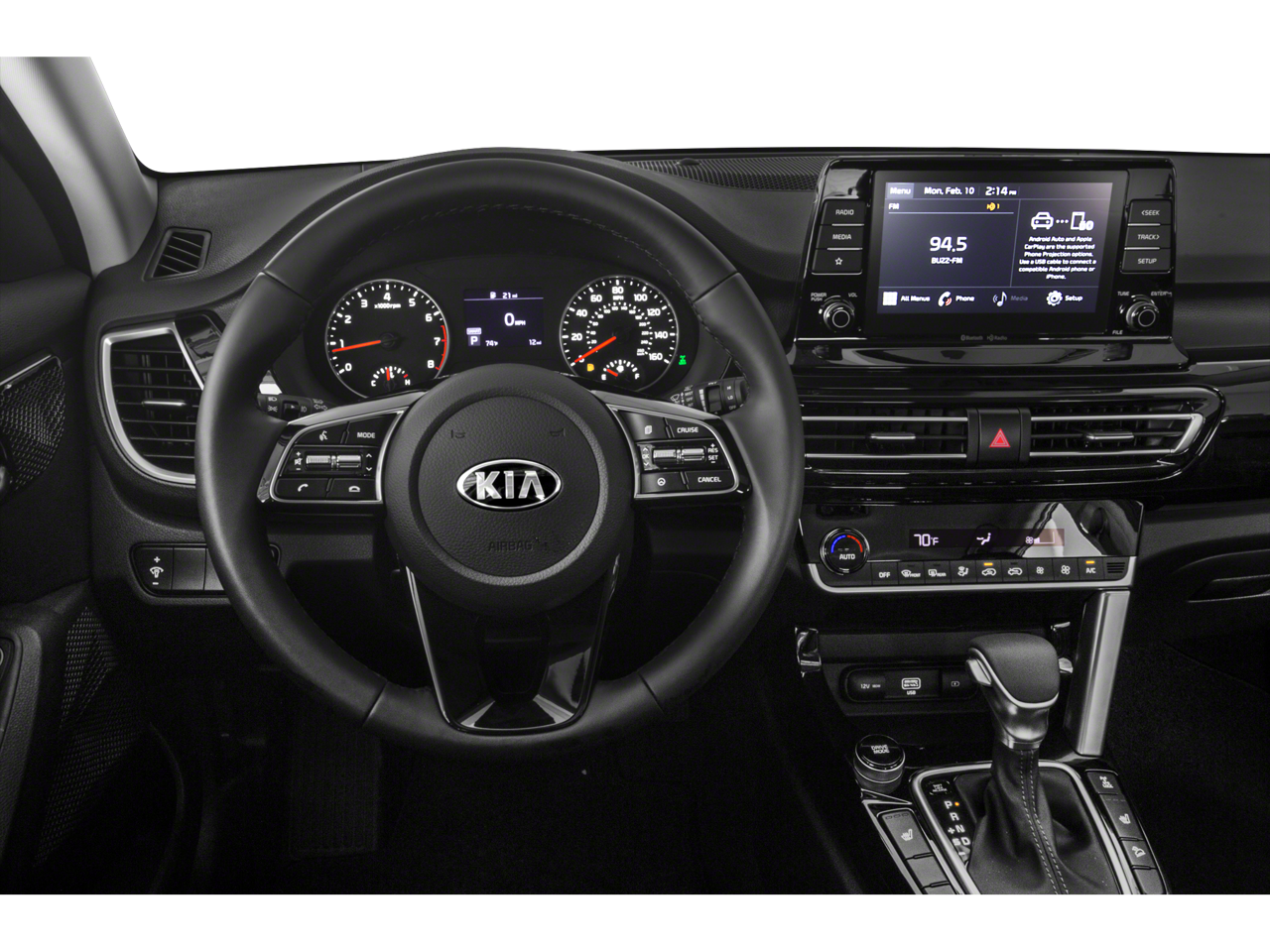 Tailored to your needs, the 2021 Kia Seltos S boasts a comprehensive list of premium amenities, including - Remote keyless entry, Steering wheel mounted audio controls, Brake assist, Electronic Stability Control, Exterior Parking Camera Rear, Panic alarm, Security system, Heated door mirrors, Power door mirrors, Turn signal indicator mirrors, Apple CarPlay & Android Auto, Illuminated entry, Telescoping steering wheel, and Tilt steering wheel.