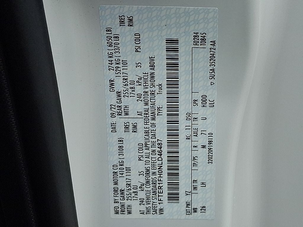 This Vehicle Includes the Following Options: Equipment Group 300A Standard, Trailer Tow Package (Class IV Trailer Hitch Receiver), 4WD, 3.73 Axle Ratio, 4-Wheel Disc Brakes, 5 Rectangular Black Running Boards, 6 Speakers, ABS brakes, Air Conditioning, Alloy wheels, AM/FM radio: SiriusXM, AM/FM Stereo, Auto High-beam Headlights, Auto Start-Stop Removal, Auto Start-Stop Technology, Automatic temperature control, Brake assist, Bumpers: body-color, Compass, Delay-off headlights, Driver door bin, Driver vanity mirror, Dual front impact airbags, Dual front side impact airbags, Electronic Stability Control, Emergency communication system: SYNC 3 911 Assist, Exterior Parking Camera Rear, Front anti-roll bar, Front Bucket Seats, Front Center Armrest, Front dual zone A/C, Front fog lights, Front Premium Cloth Bucket Seats, Front reading lights, Front wheel independent suspension, Fully automatic headlights, Illuminated entry, Low tire pressure warning, Occupant sensing airbag, Outside temperature display, Overhead airbag, Overhead console, Panic alarm, Passenger door bin, Passenger vanity mirror, Power door mirrors, Power steering, Power windows, Rear step bumper, Rear window defroster, Remote keyless entry, Reverse Sensing System, Security system, SiriusXM Satellite Radio, Speed control, Speed-sensing steering, Steering wheel mounted audio controls, SYNC 3, SYNC 3/Apple CarPlay/Android Auto, Telescoping steering wheel, Tilt steering wheel, Traction control, Trip computer, Variably intermittent wipers, Voltmeter, and Wheels: 17 Silver-Painted Aluminum.