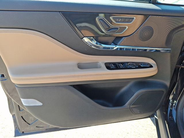 This Vehicle Includes the Following Options: Equipment Group 201A (60/40 EasyFold Rear Seat w/Power Seatback Release, Frameless Auto Dimming Rearview Mirror, Hands-Free Liftgate, Heated Sideview Mirrors, Heated Steering Wheel, Heated/Ventilated Driver & Front Passenger Seats, Phone As A Key (PAAK), Power Tilt/Telescoping Steering Column w/Memory, Rain Sensing Wipers, Universal Garage Door Opener, Windshield Wiper De-Icer, and Wireless Charging Pad), Jet Appearance Package (Body-Color Exterior Elements, Pillar Black Exterior Elements, and Wheels: 20 Black Aluminum), 10 Speakers, 19 Bright Machined Aluminum Wheels, 3.81 Axle Ratio, 360-Degree Camera, 4-Wheel Disc Brakes, ABS brakes, Air Conditioning, All-Weather Floor Liners w/Fr&Rr Carpet Floor Mats, Alloy wheels, AM/FM radio: SiriusXM, Auto High-beam Headlights, Auto-dimming Rear-View mirror, Automatic temperature control, Brake assist, Bumpers: body-color, Cargo Area Protector, Compass, Delay-off headlights, Driver door bin, Driver vanity mirror, Dual front impact airbags, Dual front side impact airbags, Electronic Stability Control, Emergency communication system: SYNC 4 911 Assist, Four wheel independent suspension, Front anti-roll bar, Front Bucket Seats, Front Center Armrest, Front dual zone A/C, Front reading lights, Front/Side/Rear Parking Sensors, Fully automatic headlights, Heated door mirrors, Heated front seats, Illuminated entry, Knee airbag, Leather steering wheel, Lincoln Premium Audio System Subwoofer Delete, Low tire pressure warning, Memory seat, Navigation system: Connected Navigation (3-year trial), Occupant sensing airbag, Outside temperature display, Overhead airbag, Overhead console, Panic alarm, Panoramic Vista Roof w/Power Shade, Passenger door bin, Passenger vanity mirror, Power door mirrors, Power driver seat, Power Liftgate, Power passenger seat, Power steering, Power windows, Premium Leather Heated Comfort Seats, Radio data system, Radio: Lincoln Premium Audio System w/MP3, Rear anti-roll bar, Rear Parking Sensors, Rear reading lights, Rear seat center armrest, Rear window defroster, Rear window wiper, Remote keyless entry, Reverse Brake Assist, Roof rack: rails only, Security system, SiriusXM Radio, Speed control, Speed-sensing steering, Speed-Sensitive Wipers, Split folding rear seat, Spoiler, Steering wheel mounted A/C controls, Steering wheel mounted audio controls, SYNC 4 Communications & Entertainment System, Tachometer, Telescoping steering wheel, Tilt steering wheel, Traction control, Trip computer, and Variably intermittent wipers.
