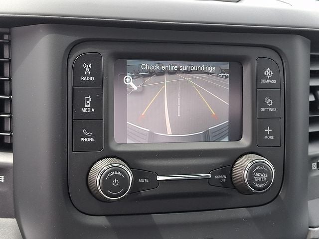 THIS VEHICLE INCLUDES THE FOLLOWING FEATURES AND OPTIONS: Chrome Appearance Group (Bright Front Bumper, Bright Rear Bumper, Center Hub, Chrome Grille Surround, Chrome Headlamp Bezels, Matte Black Mesh w/Chrome Grille, and Wheels: 18 x 8.0 Steel Chrome Clad), Heavy Duty Snow Plow Prep Group, Quick Order Package 2GA Tradesman, Tradesman Level 1 Equipment Group (Black Exterior Mirrors, Exterior Mirrors Courtesy Lamps, Exterior Mirrors w/Heating Element, Exterior Mirrors w/Supplemental Signals, Front 1-Touch Down Power Windows, Manual Folding Exterior Mirrors, Manual Telescoping Mirrors, Mirror Running Lights, Overhead Console, Overhead Cupholder Lamp, Power Adjust Mirrors, Power Heated Folding Telescopic Mirrors, Power-Adjustable Convex Aux Mirrors, Remote Keyless Entry, Speed Sensitive Power Locks, and Upgraded Door Trim Panel), 17 x 7.5 Steel Styled Wheels, 2-Way Front Head Restraints, 220 Amp Alternator, 3.73 Axle Ratio, 4 Speakers, 4-Wheel Disc Brakes, 40/20/40 Split Bench Seat, ABS brakes, Air Conditioning, AM/FM radio, Brake assist, Compass, Delay-off headlights, Driver door bin, Dual front impact airbags, Dual front side impact airbags, Electronic Stability Control, Electronically Controlled Throttle, Emergency communication system: SiriusXM Guardian, For Details, Visit DriveUconnect.com, Front anti-roll bar, Front Armrest w/Cupholders, Front Center Armrest w/Storage, Front License Plate Bracket, Front reading lights, Fully automatic headlights, Global Telematics Box Module (TBM), GPS Antenna Input, Heavy Duty Vinyl 40/20/40 Split Bench Seat, I/P Mounted Auxiliary Switches, Illuminated entry, Integrated Voice Command w/Bluetooth®, Low tire pressure warning, Manual Adjust 4-Way Driver Seat, Manual Adjust 4-Way Front Passenger Seat, Occupant sensing airbag, Outside temperature display, Overhead airbag, ParkView Rear Back-Up Camera, Passenger door bin, Passenger vanity mirror, Power steering, Radio data system, Radio: Uconnect 3 w/5 Display, Rear anti-roll bar, Rear step bumper, Remote USB Port - Charge Only, Speed control, Tachometer, Tilt steering wheel, Tip Start, Traction control, Trailer Brake Control, Trailer Light Check, Variably intermittent wipers, and Voltmeter.