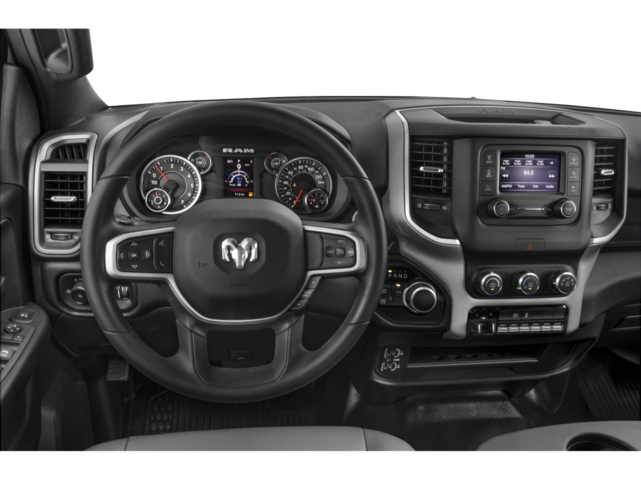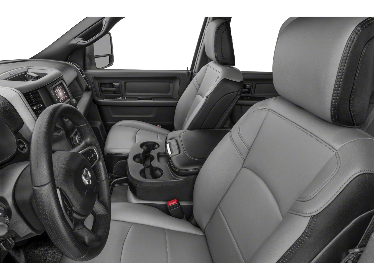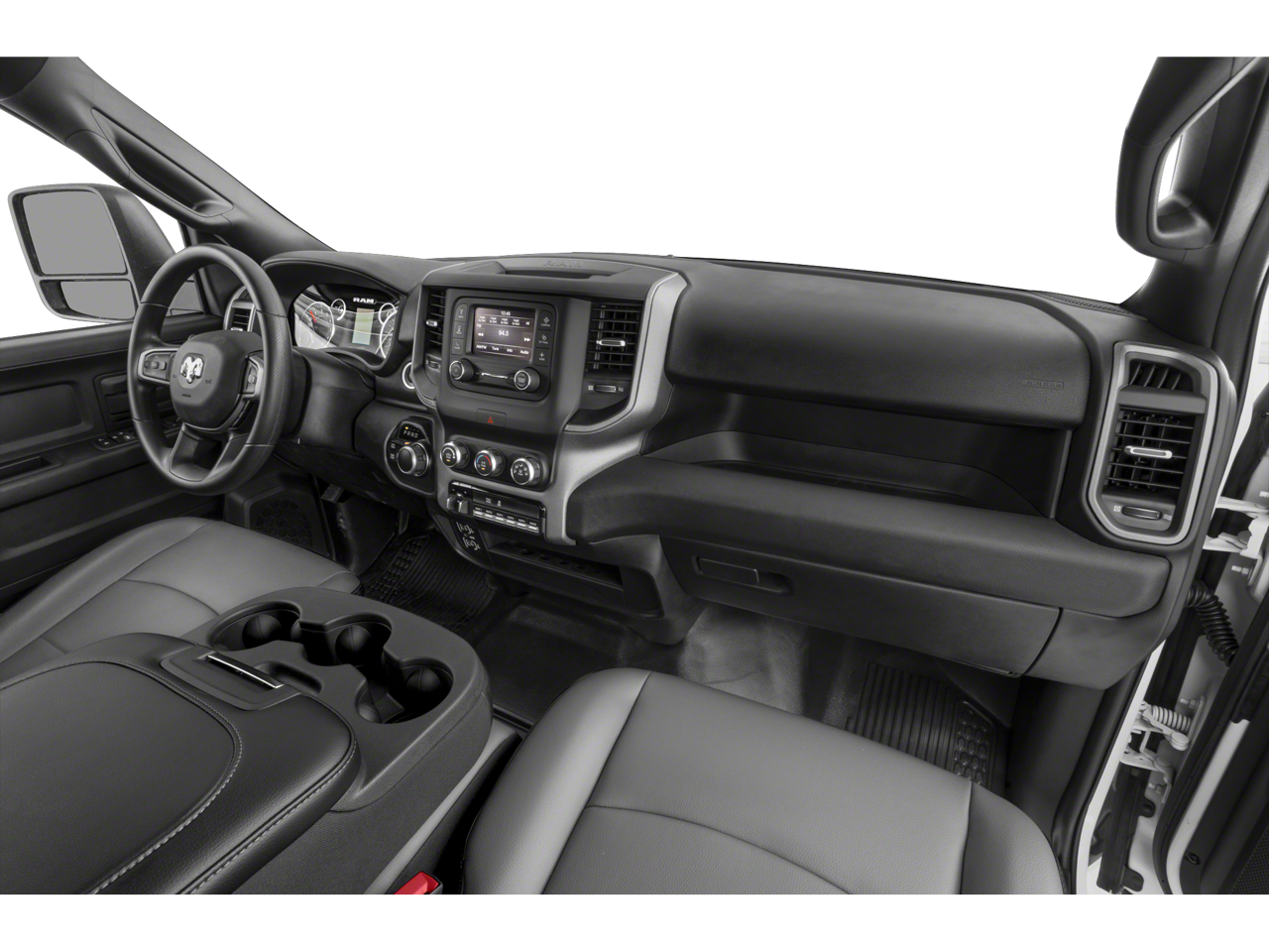 The interior of the Ram 3500 Tradesman is designed with your comfort and convenience in mind. The spacious cabin features a 40/20/40 split bench seat with available cloth upholstery, providing ample room for you and your crew. The Uconnect 5 infotainment system with an 8.4-inch display keeps you connected and entertained, with features like Apple CarPlay, Android Auto, and SiriusXM satellite radio.